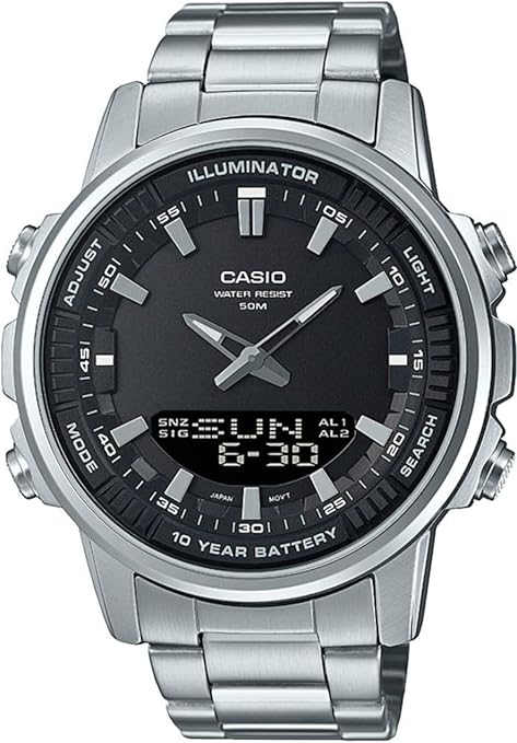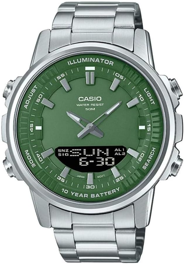 Metal-clad with a pop of color — a sporty design with a distinctive dial. With water resistance up to 50 meters, ten-year battery life, stopwatch, calendar, and world time, these beautiful watches totally deliver on function, too. The Telememo 30 function, which stores up to 30 telephone numbers right on the watch, keeps the numbers you need handy. LED light ensures high visibility and an easy read.
